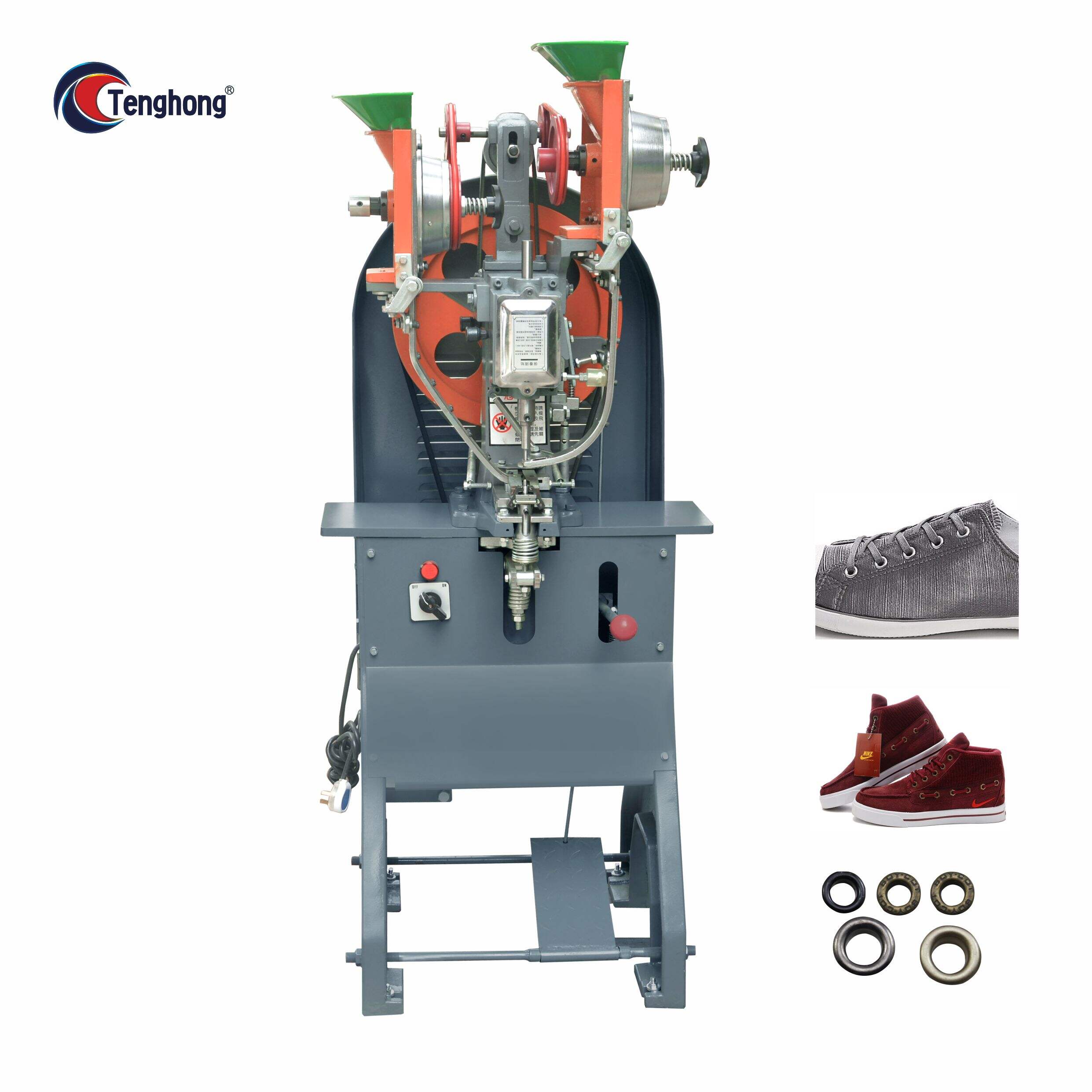 - This model features automatic feeding of both eyelets and necked washers, precise positioning, stable performance and good eyeleting effect.